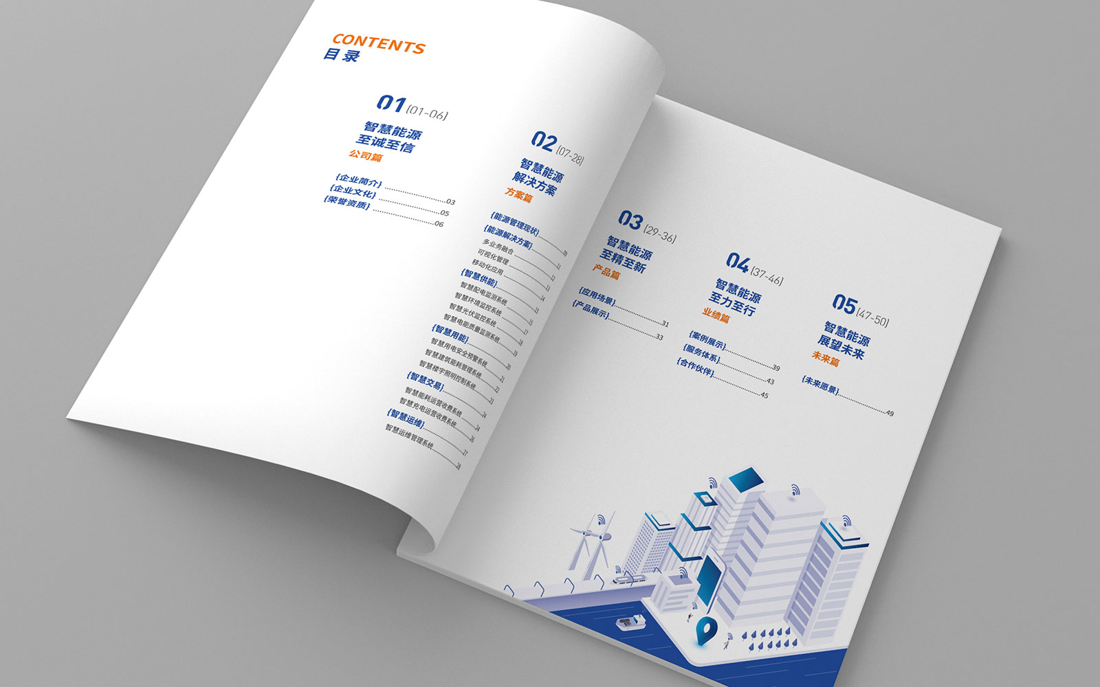 畫冊在設計過程中為實現能源的可視化,進行了2.5D的插畫設計,讓整本畫冊內容美觀、易懂。封面采用了數據化、科技化的設計,貼合企業的行業屬性。