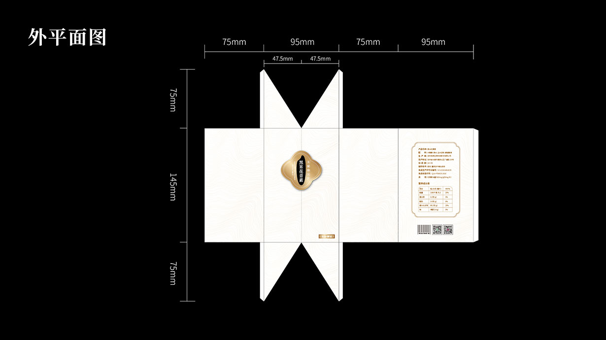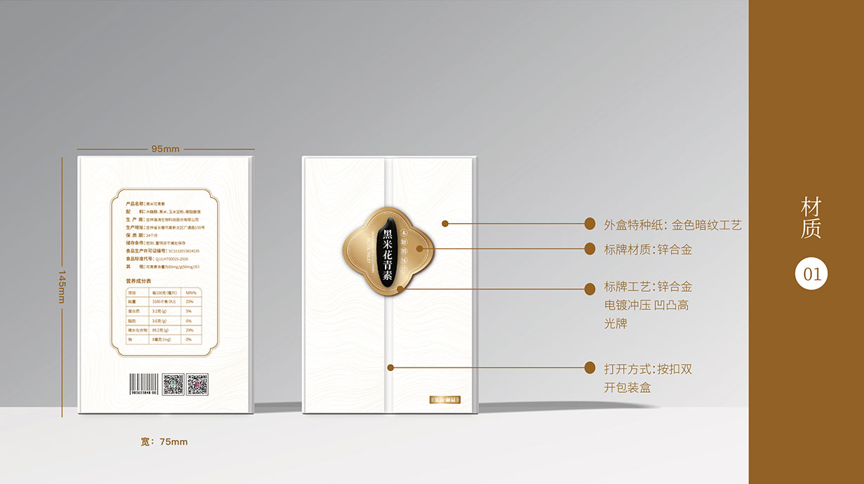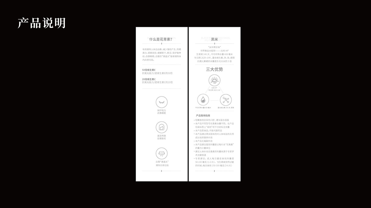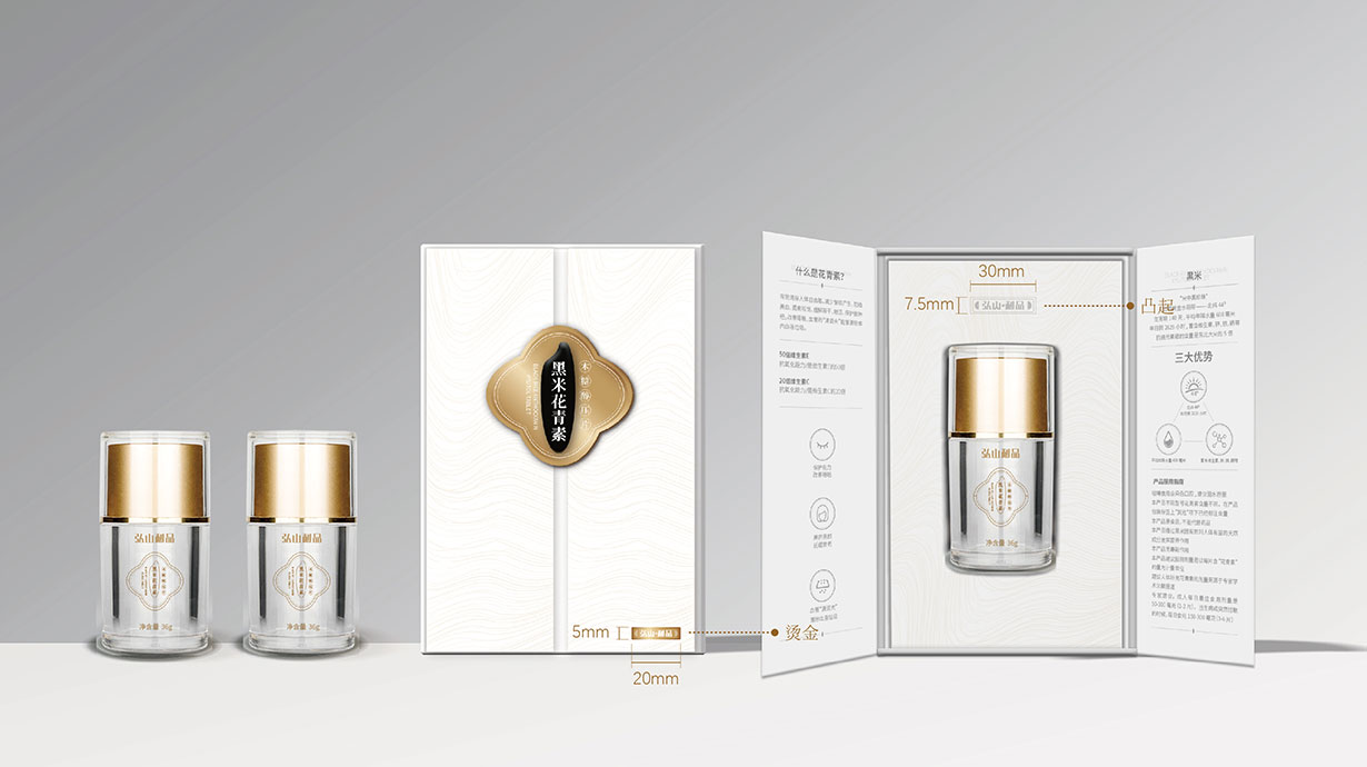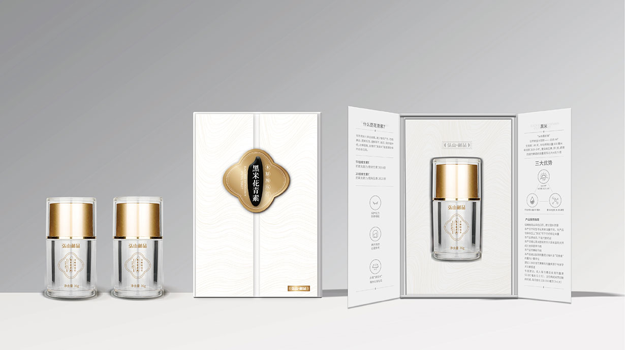 針對這一目標問題,石特從黑米花青素本身代表的含義出發(fā),在包裝上著重體現(xiàn)其特色,為其梳理了內盒外盒的包裝設計,提升了其品牌形象。