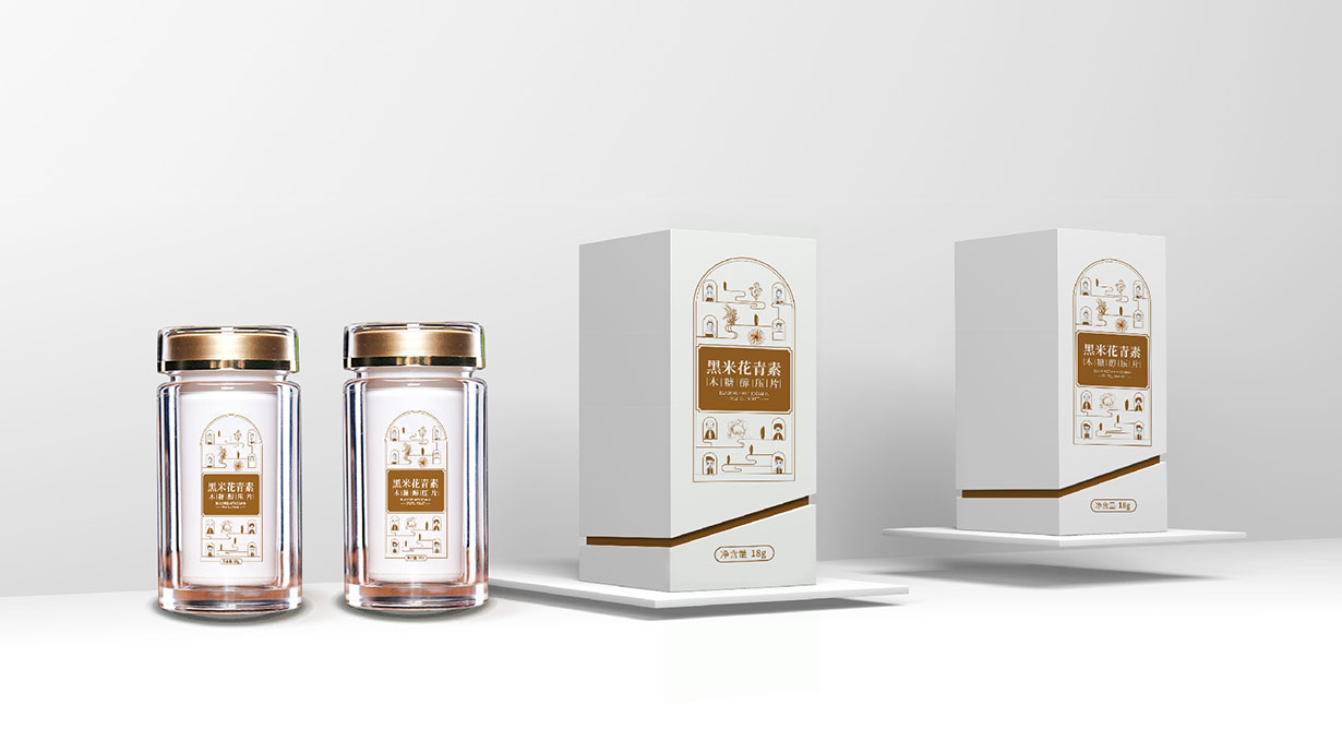 花青素,自然界一類廣泛存在于植物中的水溶性天然色素,也是植物花瓣中的主要呈色物質,水果、蔬菜、花卉等五彩繽紛的顏色大部分與之有關,它廣泛存在于黑米、藍莓、越橘、紫甘藍等植物中,是一種具有一定營養(yǎng)和藥理作用的純天然食用色素,可以抵抗因人體自由基引起的多種相關疾病。原黑米花青素的包裝沒有過多的創(chuàng)意,瓶身形狀沒有特色,只有一個單一的LOGO,不利于品牌傳播。