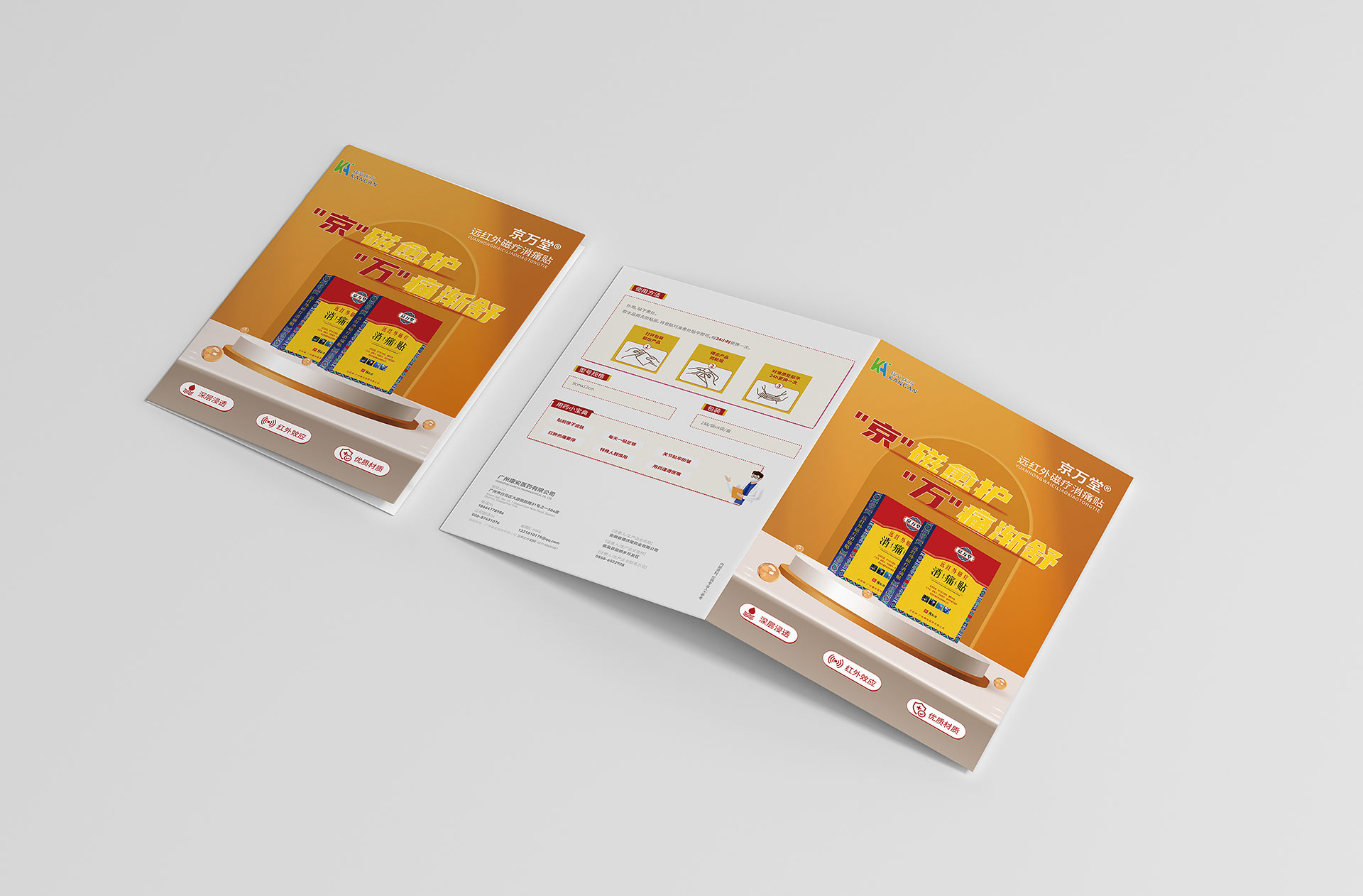 賦能專業拜訪:廣州康安4款遠紅外磁貼DA折頁的賣點可視化設計