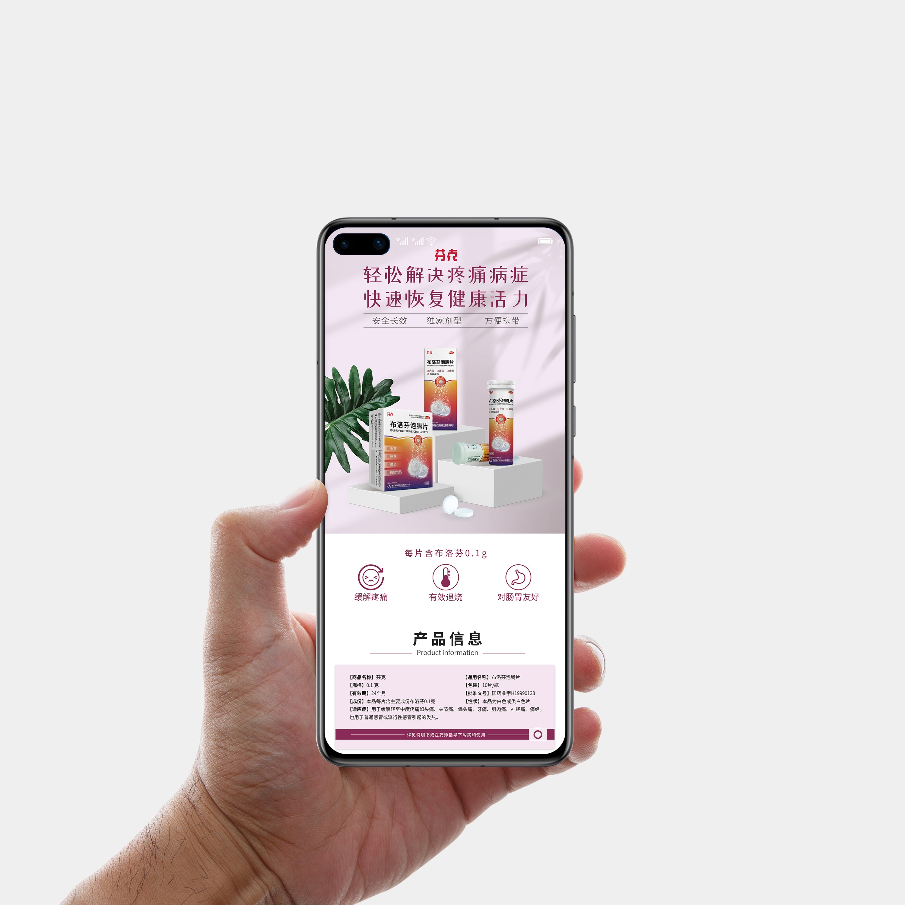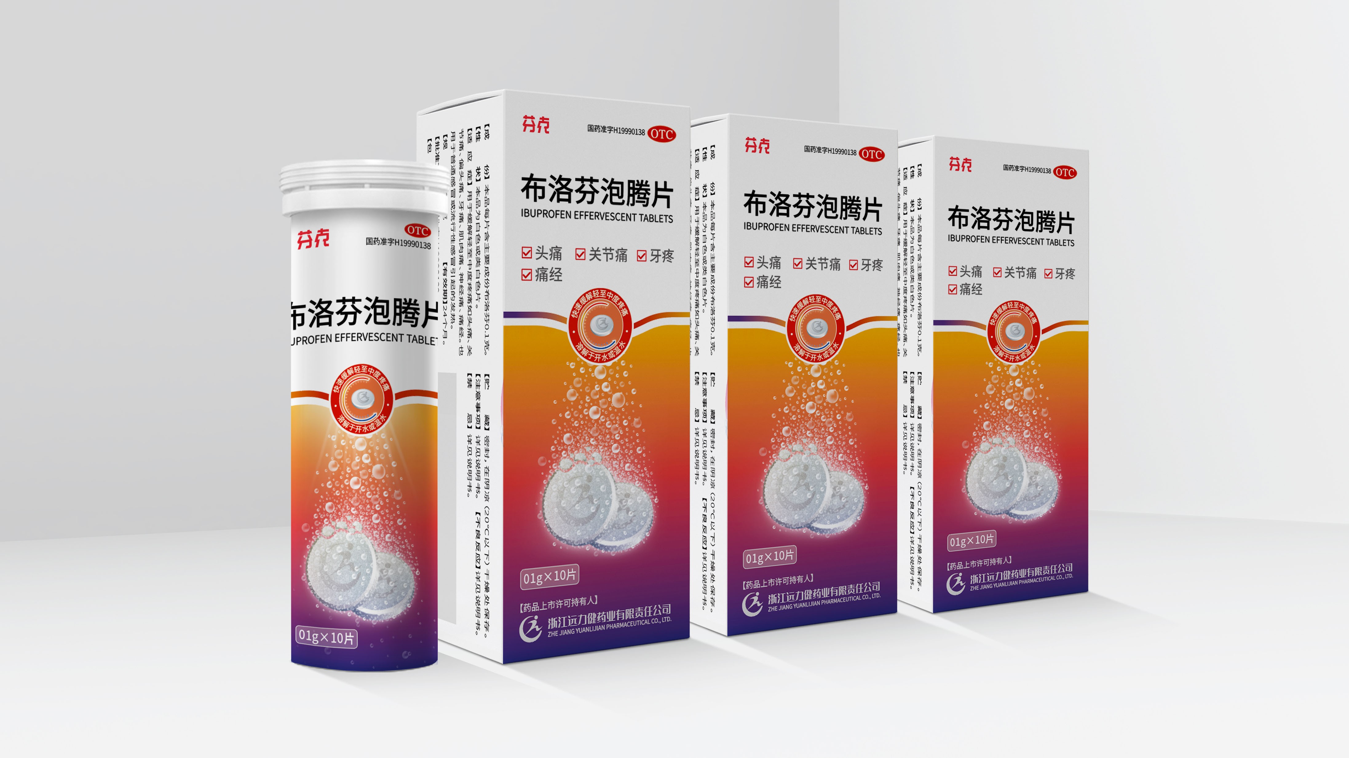 公司了解到目前市場上通用的“布洛芬”藥物多為膠囊狀,<span style="font-family:"">而膠囊形態的藥物在服用后需經過一段時間才能發揮藥效。為能更好更快發揮藥效,公司積極創新,對旗下“芬克”牌布洛芬進行全面升級,推出可迅速溶入水的泡騰片。升級后的包裝及宣傳物料急需重新設計,因此找到石特團隊。