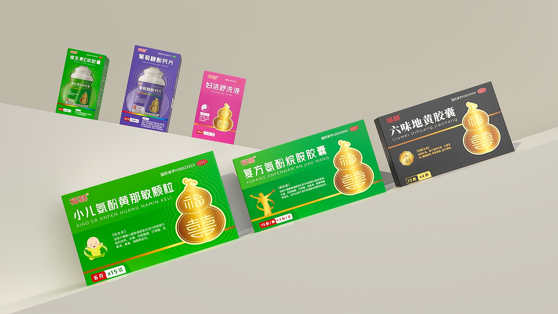 3. 系列化產(chǎn)品包裝設(shè)計(jì):針對(duì)福囍醫(yī)藥的核心產(chǎn)品線,進(jìn)行了系統(tǒng)化的包裝設(shè)計(jì)。在確保合規(guī)性的基礎(chǔ)上,突出產(chǎn)品特色與賣點(diǎn),通過統(tǒng)一的視覺語言提升產(chǎn)品陳列的整體美感與品牌檔次,助力終端銷售。