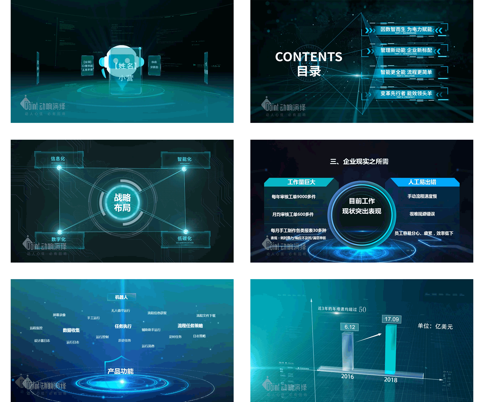 動響演繹為國網營口供電局創青春”遼寧青年創新創業大賽提供PPT定制美化設計,精美的頁面將項目工作展現的更加透徹,讓整個匯報過程更加高效。此次為“AI+RPA客服工單管控平臺機器人”進行了PPT視頻制作,獲得客戶認可。